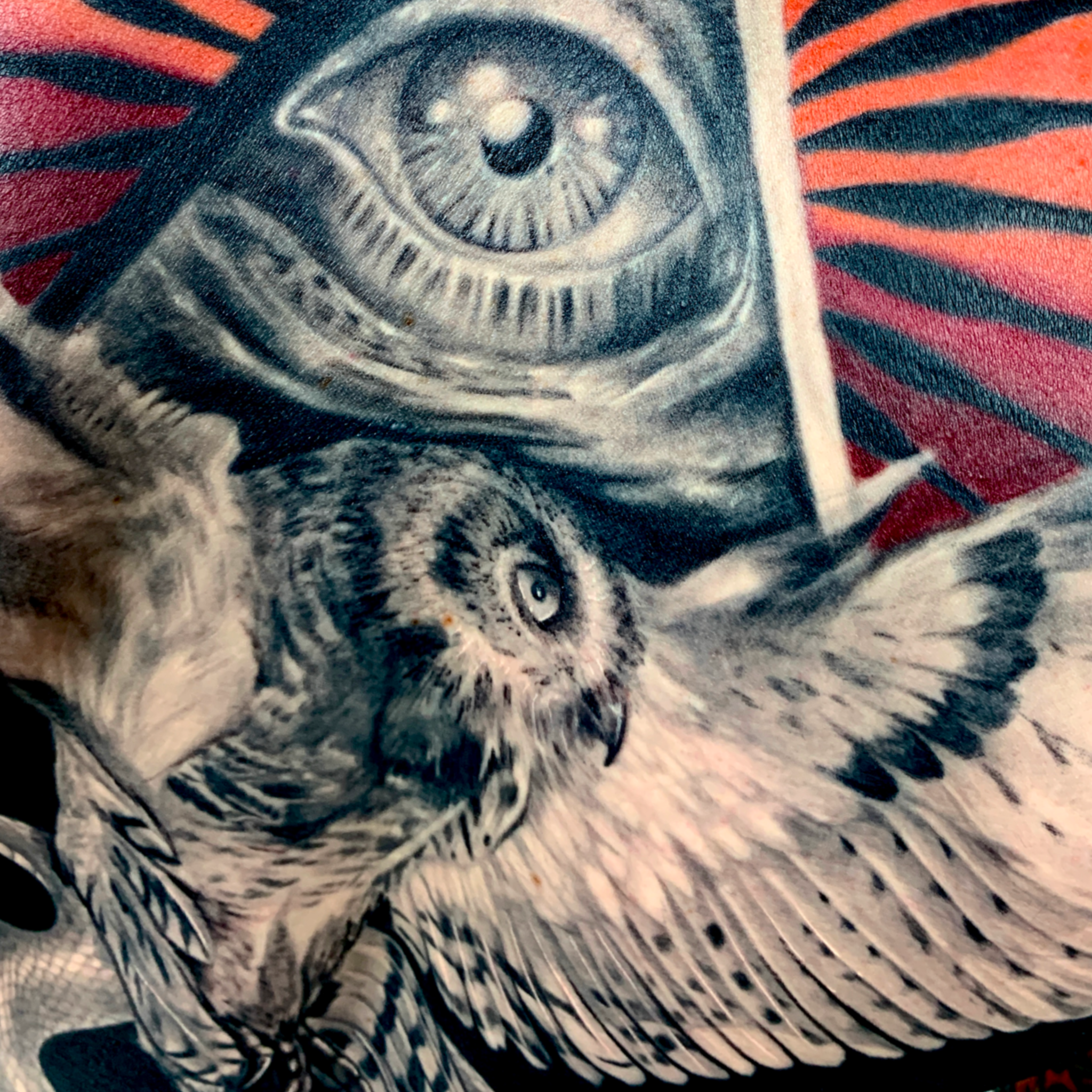 Nicolai enjoys working on any style, so if what you’re wanting is not on his preferred subjects, do not fret, send your request in anyway!His preferred subjects are: Freehand, Placement of hands, feet, neck, and faces, Cover ups, Space, Abstract, White on Black, and Black Out.